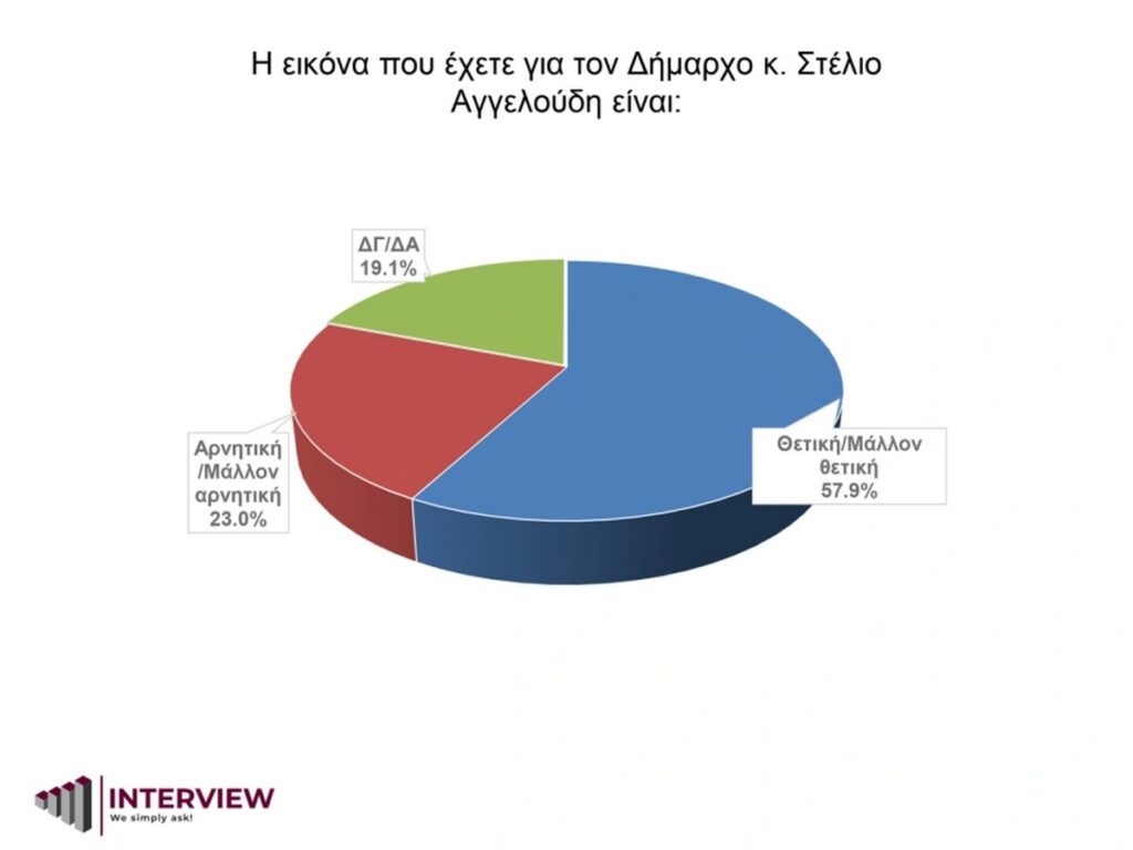 Ο ίδιος ο δήμαρχος Θεσσαλονίκης έχει υψηλό ποσοστό σε θετικές γνώμες στην έρευνα της Interview. O Στέλιος Αγγελούδης συγκεντρώνει 57,9% θετικών γνωμών, ενώ το 44,5% δηλώνει ικανοποίηση από το έργο της δημοτικής Αρχής.