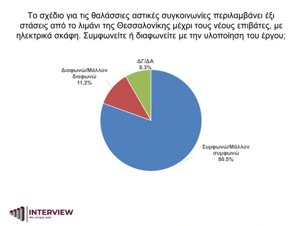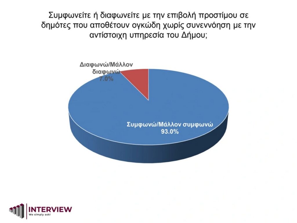 Όσον αφορά τα υψηλά πρόστιμα που επιβάλει πλέον ο δήμος για την εναπόθεση ογκωδών ένα συντριπτικό 93% συμφωνεί με την επιβολή τους. Τέλος ένα 80,5% συμφωνεί με το σχέδιο για τη θαλάσσια αστική συγκοινωνία.