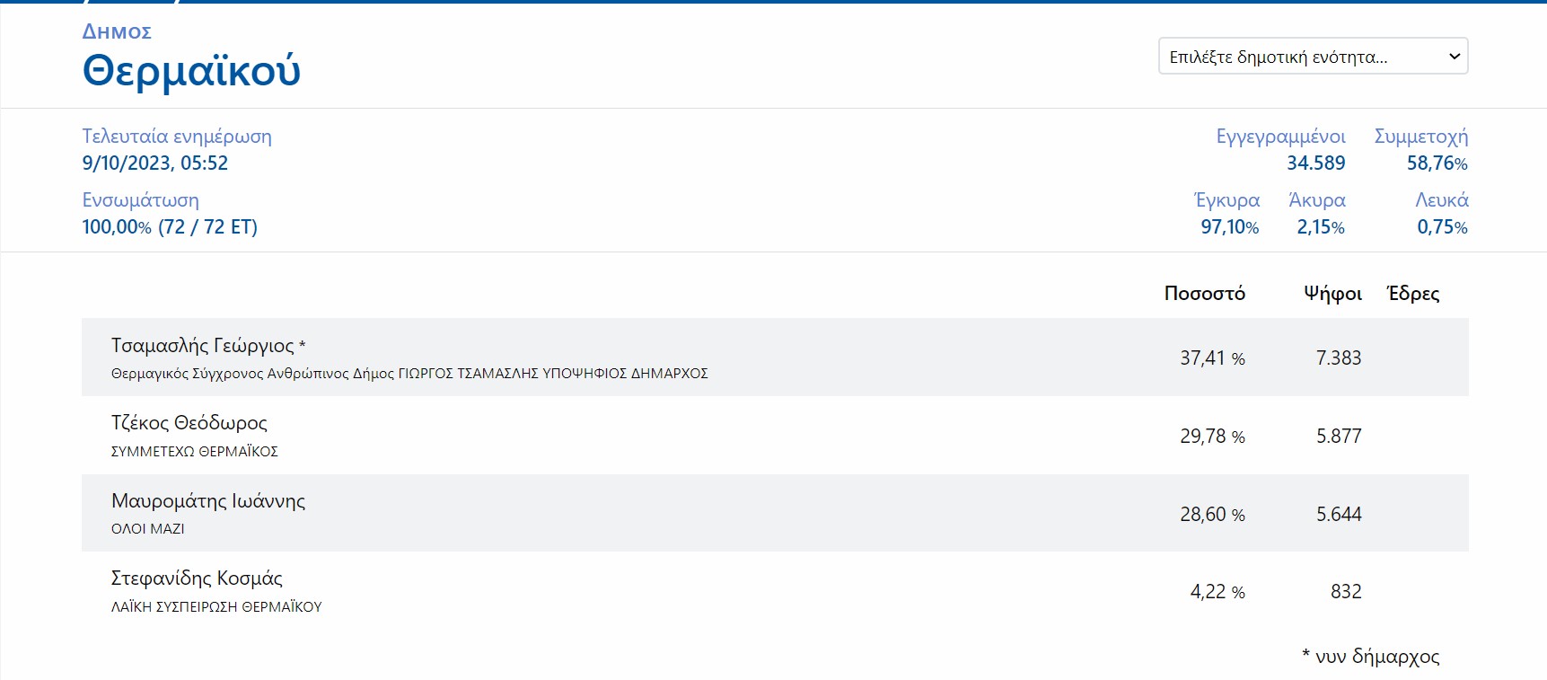 Έξι δήμοι στη Θεσσαλονίκη πάνε σε δεύτερο γύρο (ΦΩΤΟ)