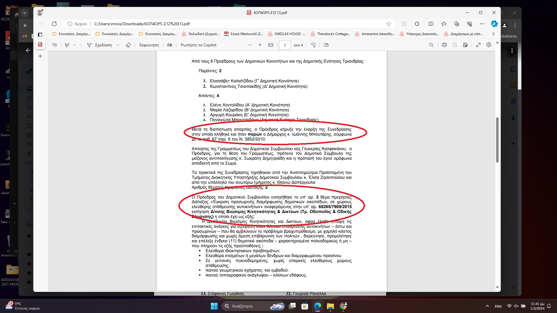Ακόμα αναφέρεται πως: «Ο Ειδικός Σύμβουλος του σημερινού Δημάρχου κ. Παναγιώτης Αβραμόπουλος ήταν εκείνος που το έτος 2010, ως Πρόεδρος Δημοτικού Συμβουλίου, παρόντος του τότε Δημάρχου Γιάννη Μπουτάρη, εισηγήθηκε στο Δημοτικό Συμβούλιο την έγκριση της χρήσης ως χώρων στάθμευσης, μιας σειράς οικοπέδων.
