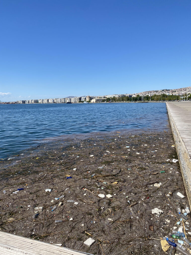 Στο σχόλιο, το οποίο συνοδεύεται και από φωτογραφίες, αναφέρεται πως σκουπίδια και πλαστικά επιπλέουν στα νερά του Θερμαϊκού.