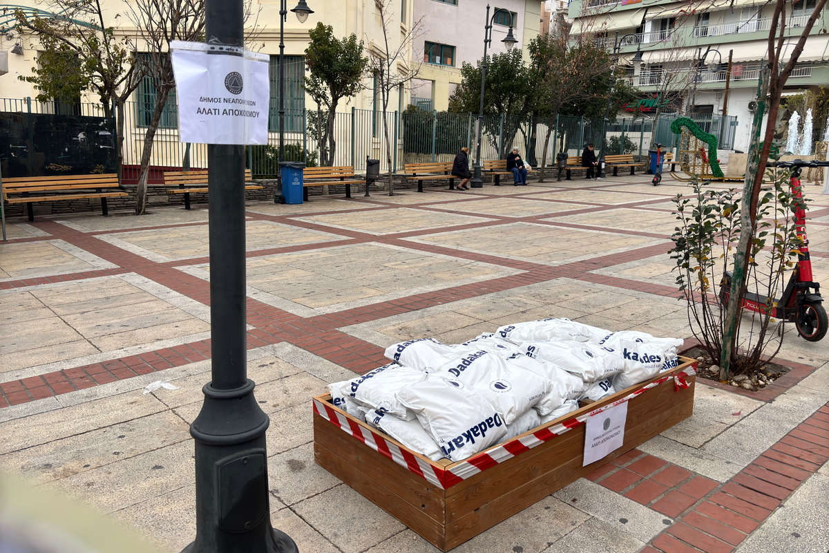 Σύμφωνα με τον προγραμματισμό αλάτι θα έχει τοποθετηθεί μέχρι αύριο το βράδυ σε όλα τα δημοτικά κτίρια, τις σχολικές μονάδες και τις εκκλησίες.
