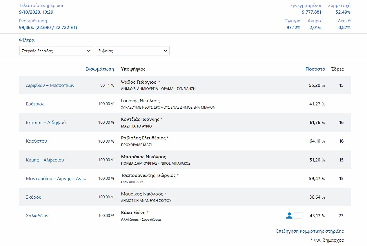 Αναλυτικά τα αποτελέσματα για την Εύβοια: