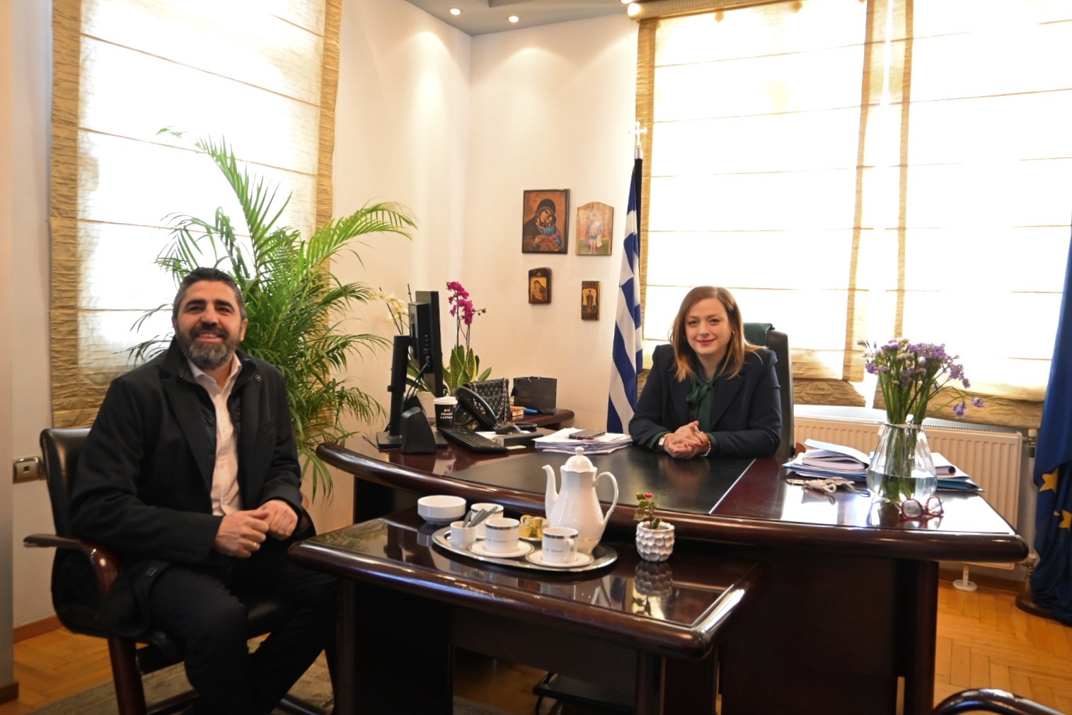 Κατά τη διάρκεια της συνάντησής τους η κ. Μπισμπινά δήλωσε το ενδιαφέρον της για μεγαλύτερη συνεργασία με την Περιφερειακή Ένωση Δήμων Κεντρικής Μακεδονίας ώστε ο δήμος Δέλτα να γίνει περισσότερο εξωστρεφής.