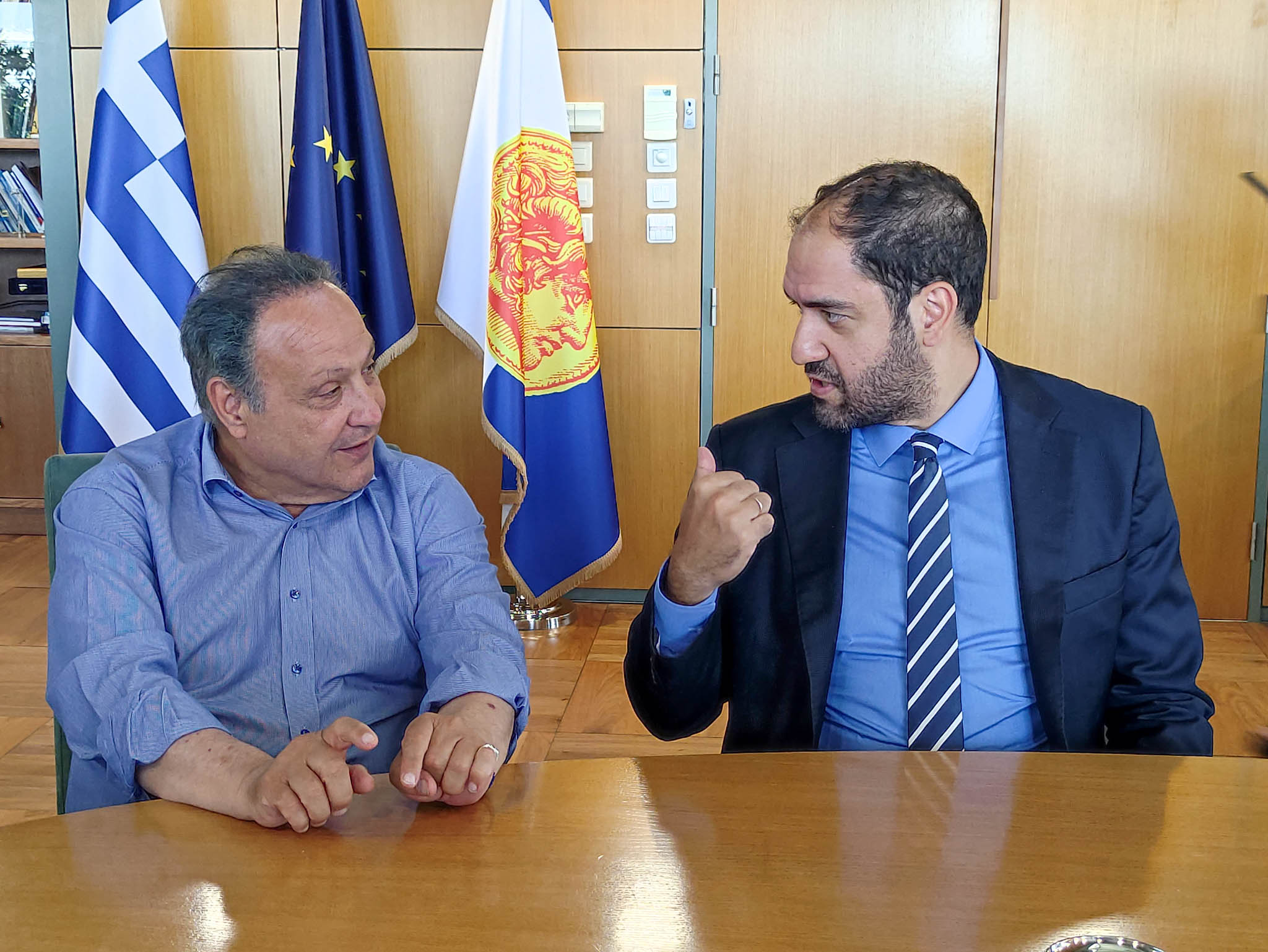 Το ζήτημα της παραχώρησης στον Δήμο Θεσσαλονίκης του πάρκου στο Πεδίον του Άρεως και της έκτασης της Αγίας Φωτεινής συζήτησαν ο Δήμαρχος Θεσσαλονίκης, Στέλιος Αγγελούδης και ο Υφυπουργός Εθνικής Άμυνας, Γιάννης Κεφαλογιάννης, στη συνάντηση που είχαν σήμερα, Δευτέρα 17 Ιουνίου 2024, στο Δημαρχιακό Μέγαρο.