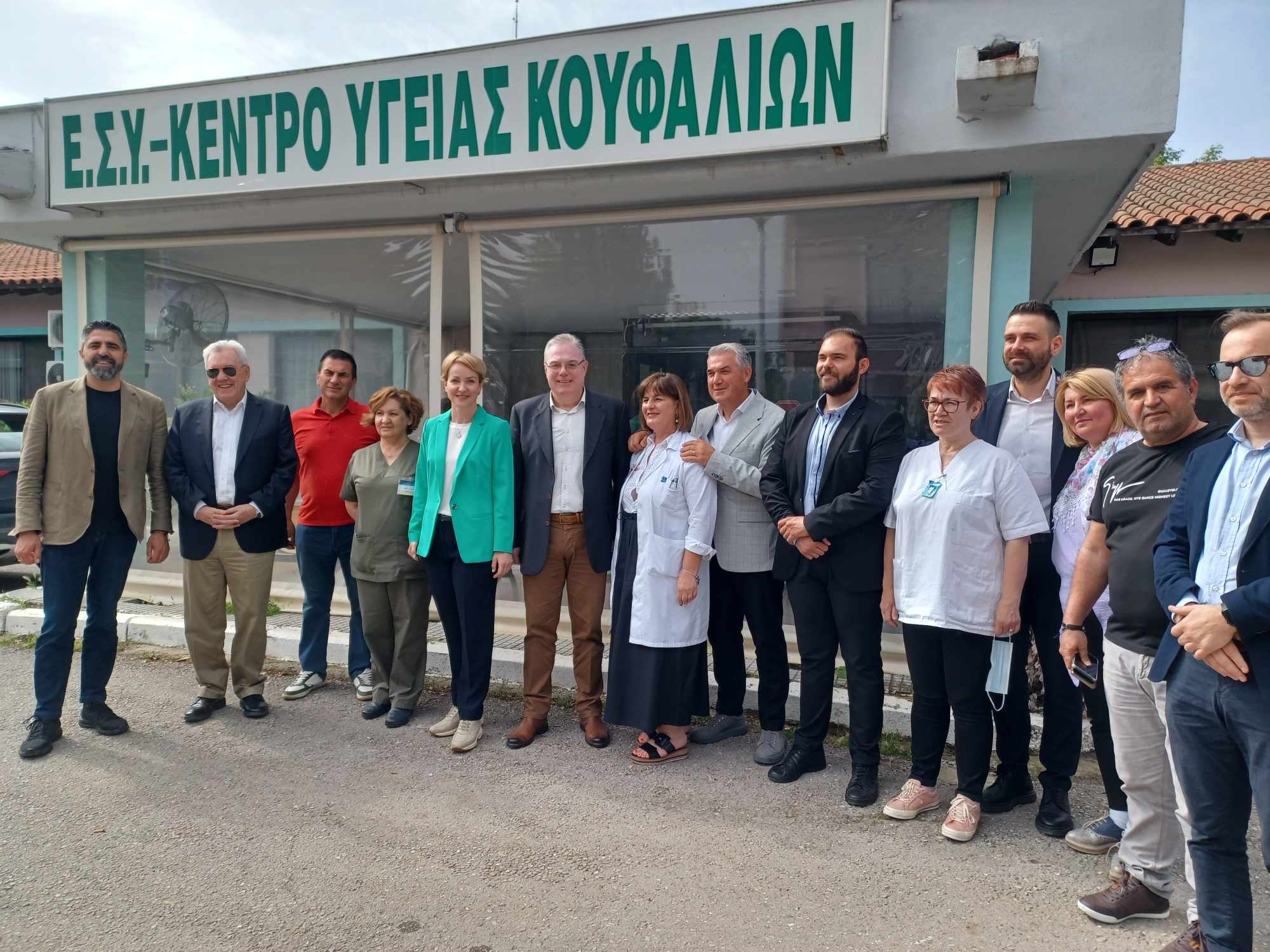 Στη συνέχεια η Κ. Σδούκου συνοδευόμενη από τον Δήμαρχο Χαλκηδόνος και Αντιδημάρχους του Δήμου επισκέφτηκαν το Κέντρο Υγείας Κουφαλίων όπου συναντήθηκαν με την Διευθύντρια του Κέντρου και ενημερώθηκαν για την ανακαίνιση και ενεργειακή αναβάθμιση του κτηρίου. Ακολούθησε η ξενάγηση στο αντλιοστάσιο του ΤΟΕΒ στην περιοχή του Μικρού Μοναστηρίου όπου η Υφυπουργός συνομίλησε με εκπροσώπους του και αγρότες για το πρόγραμμα «Απόλλων» και για θέματα εκσυγχρονισμού των αντλιοστασίων των ΤΟΕΒ, ενώ λίγο αργότερα επισκέφτηκε τις εγκαταστάσεις του βιολογικού καθαρισμού στο Βαλτοχώρι. Η επίσκεψη της Υφυπουργού ολοκληρώθηκε με την επίσκεψη στην πλατεία του Αγίου Αθανασίου όπου συνομίλησε με μαθητές και κατοίκους ενώ στη συνέχεια ξεναγήθηκε στις εγκαταστάσεις της βιομηχανίας δομικών υλικών Isomat στον Άγιο Αθανάσιο.