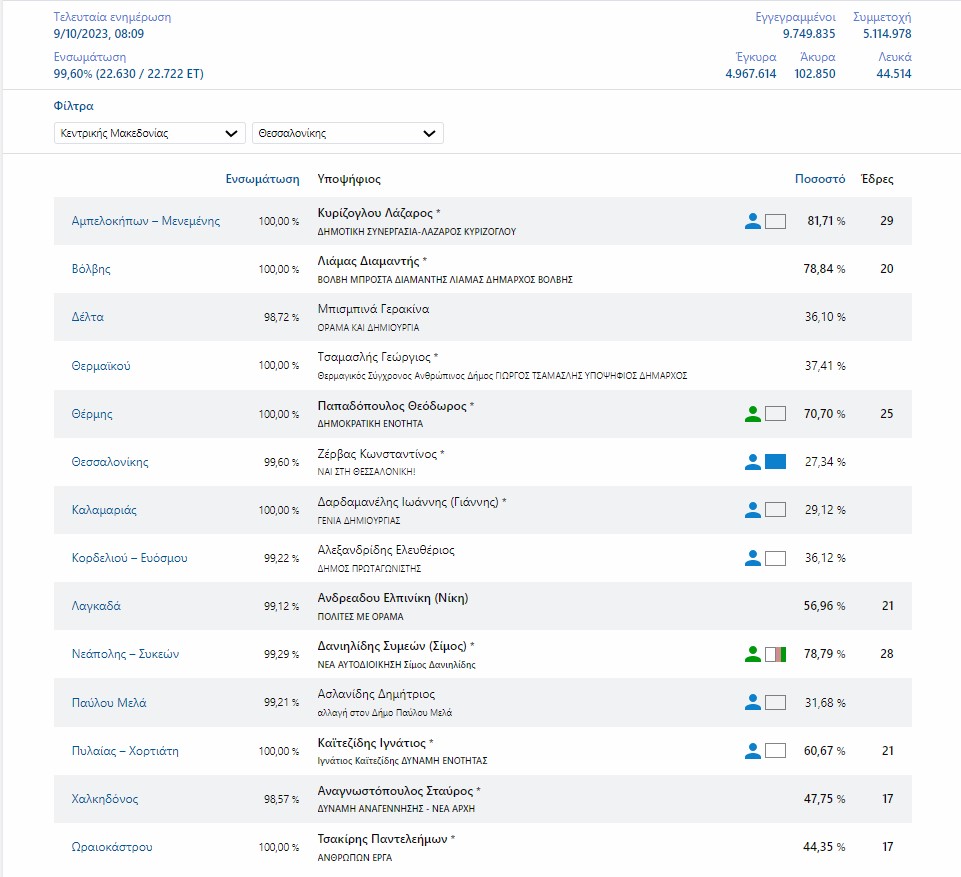 Συνολικά οκτώ δήμοι στη Θεσσαλονίκη έχουν ήδη δήμαρχο από την πρώτη Κυριακή.