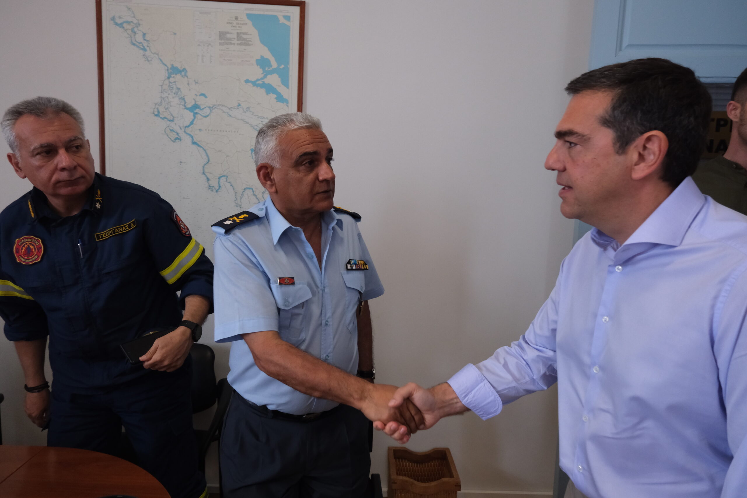 Νωρίτερα, ο κ. Τσίπρας συναντήθηκε με τις αρμόδιες Αρχές, αξιωματικούς του Λιμενικού, παρόντος και του υπηρεσιακού υπουργού Κλιματικής Κρίσης και Πολιτικής Προστασίας Ευαγγελου Τουρνά.