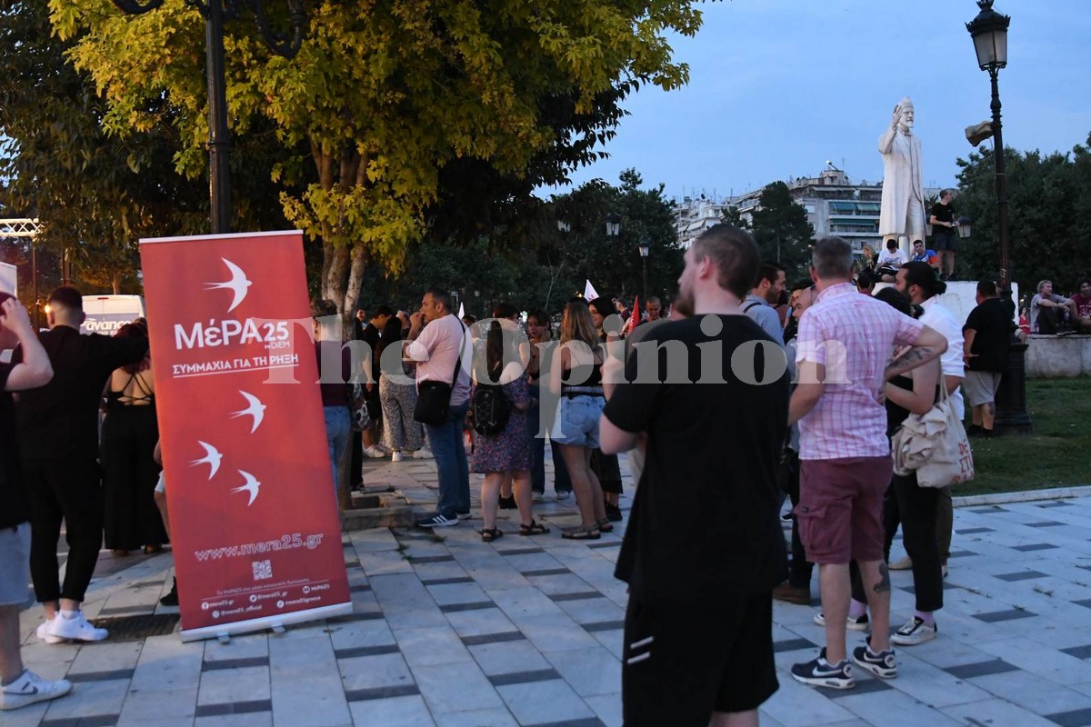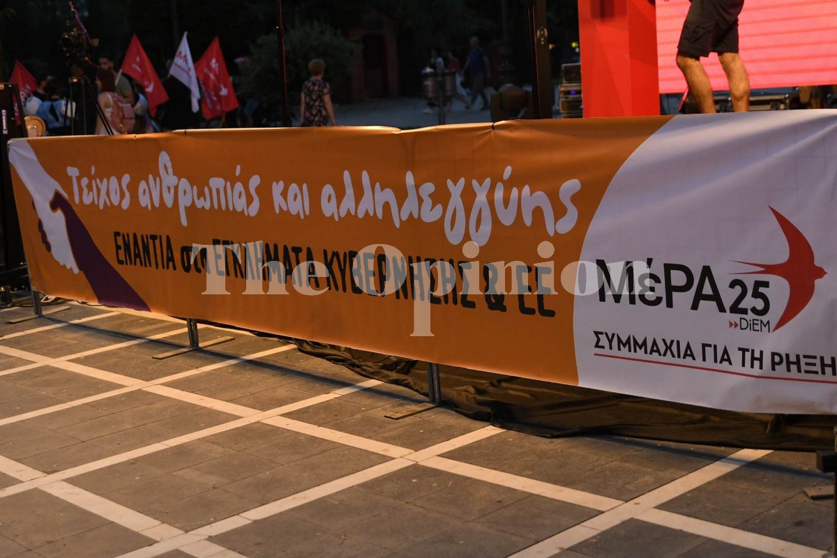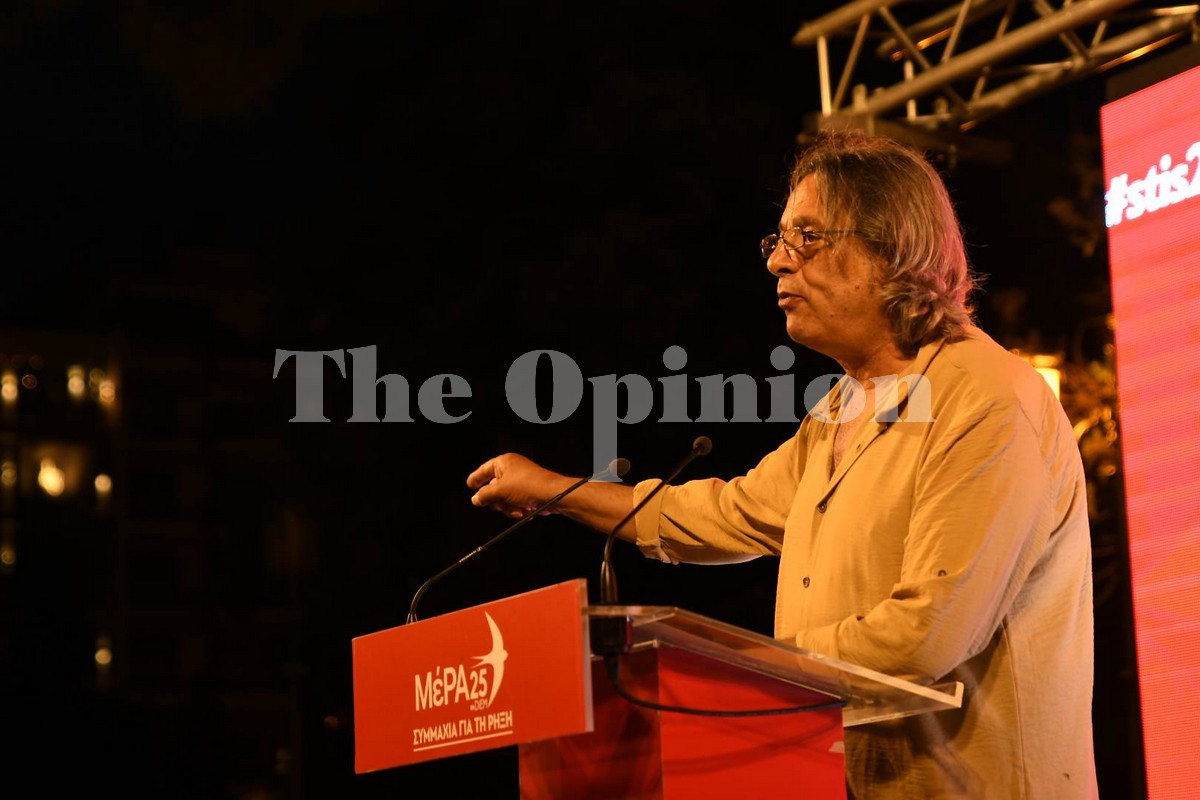 «Πριν ένα μήνα, ο ουρανός της Θεσσαλονίκης δεν μας επέτρεψε να βρεθούμε εδώ, στη σκιά του Βενιζέλου, όπως είχαμε βρεθεί πριν 4 χρόνια, τότε που το ΜέΡΑ25 έκανε το θαύμα να ξαναβάλει στη Βουλή το “όχι” ,να βάλει ξανά στη Βουλή την υπεύθυνη ανυπακοή, την πατριωτική, διεθνιστική, πλουραλιστική, οικολογική, ανυπότακτη Αριστερά» είπε ξεκινώντας την ομιλία του στην καρδιά της Θεσσαλονίκης το βραδυ της Πέμπτης, ο γραμματέας του ΜέΡΑ 25 Συμμαχία για τη Ρήξη Γιάνης Βαρουφάκης.