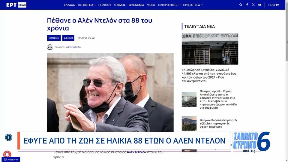 «Έφυγε» ο πασίγνωστος ηθοποιός Αλέν Ντελόν (VIDEO)