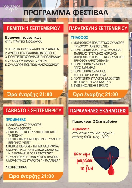 Μια «ανοιχτή γιορτή» διοργανώνει ο Δήμος Βέροιας με τη συμμετοχή 18 πολιτιστικών συλλόγων.