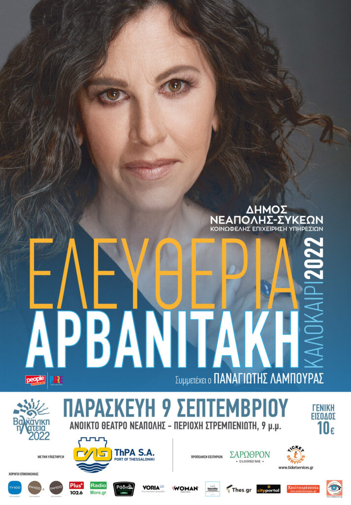 ► ΠΑΡΑΣΚΕΥΗ 9 ΣΕΠΤΕΜΒΡΙΟΥ 2022, Συναυλία της Ελευθερίας Αρβανιτάκη