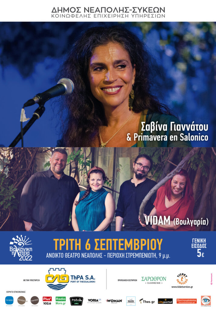 ► ΤΡΙΤΗ 6 ΣΕΠΤΕΜΒΡΙΟΥ 2022, Συναυλία με τη Σαββίνα Γιαννάτου και τους Primavera en Salonico, και τους VIDAM (Βουλγαρία)