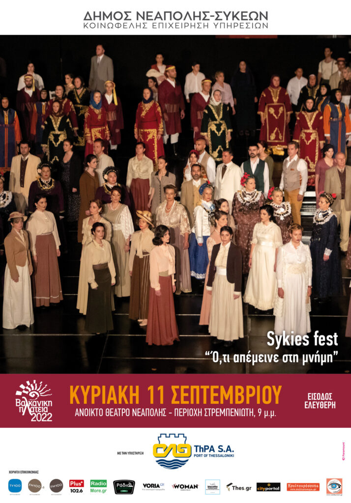 ► ΚΥΡΙΑΚΗ 11 ΣΕΠΤΕΜΒΡΙΟΥ 2022, «Ό,τι απέμεινε στη μνήμη»: Μουσικο-θεατρική παράσταση του Sykies Fest αφιερωμένη στα 100 χρόνια από τη Μικρασιατική Καταστροφή.