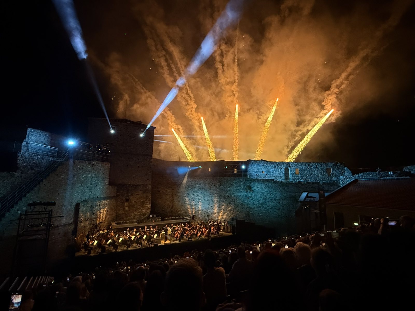 Και την ώρα που η ορχήστρα ερμήνευε τη «Μουσική των Βασιλικών Πυροτεχνημάτων» του Χέντελ, ο ουρανός της Θεσσαλονίκης φωτίστηκε: ένα φαντασμαγορικό θέαμα πέντε λεπτών με οικολογικά πυροτεχνήματα φώτισε τη νύχτα και τις καρδιές όλων μας, σφραγίζοντας με λάμψη και συγκίνηση τη μεγάλη πρεμιέρα. Η βραδιά ολοκληρώθηκε με έντονη συγκίνηση και την αίσθηση ότι το φως της τέχνης μπορεί ακόμη να διαλύει σκοτάδια. Ξεκινήσαμε δυναμικά. Συνεχίζουμε με πάθος.