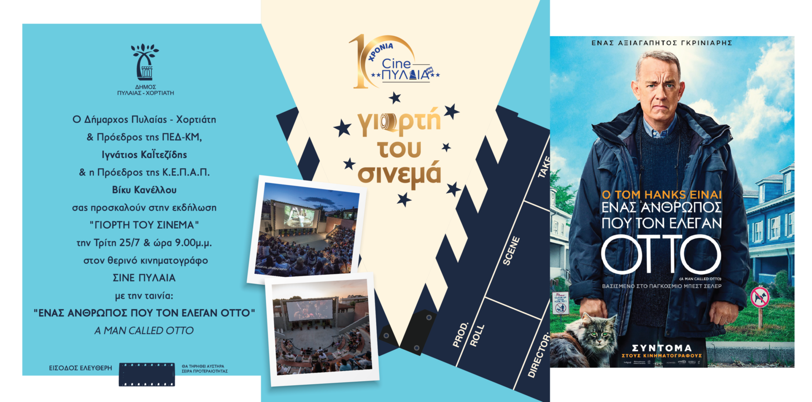 - Την Τρίτη 25/7/2023 στο ΣΙΝΕ ΠΥΛΑΙΑ θα προβληθεί «ΕΝΑΣ ΑΝΘΡΩΠΟΣ ΠΟΥ ΤΟΝ ΕΛΕΓΑΝ ΟΤΤΟ – A MAN CALLED OTTO» σε σκηνοθεσία Μαρκ Φόρστερ και πρωταγωνιστές τον Τομ Χανκς και τη Μαριάνα Τρεβίνιο. Σύμφωνα με το σενάριο της ταινίας ένας μοναχικός γκρινιάρης γεροντοπαράξενος συνταξιούχος που έχει χάσει τη γυναίκα του, αναπτύσσει μια απρόσμενη φιλία με μια οικογένεια που μετακομίζει στο γειτονικό σπίτι. Πρόκειται για μια υπέροχη γλυκόπικρη κοινωνική ταινία με την καταπληκτική ερμηνεία του Τομ Χανκς, ριμέικ της πολυβραβευμένης Σουηδικής ταινίας «ΕΝΑΣ ΑΝΘΡΩΠΟΣ ΠΟΥ ΤΟΝ ΕΛΕΓΑΝ ΟΥΒΕ», βασισμένης στο ομώνυμο παγκόσμιο best seller.