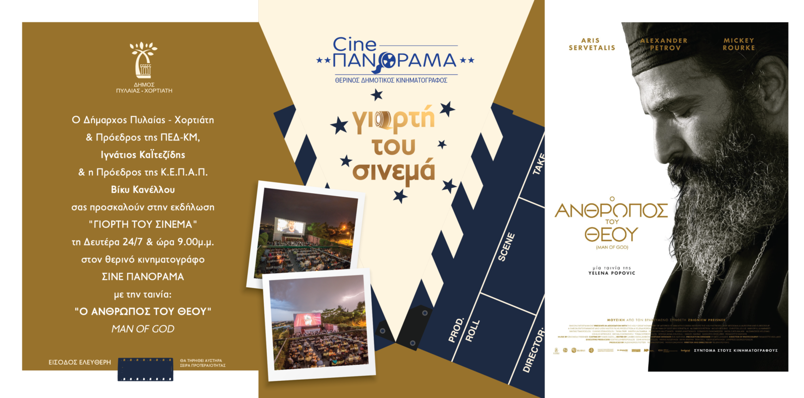 - Τη Δευτέρα 24/7/2023 στο ΣΙΝΕ ΠΑΝΟΡΑΜΑ θα προβληθεί «Ο ΑΝΘΡΩΠΟΣ ΤΟΥ ΘΕΟΥ – MAN OF GOD» της Γέλενα Πόποβιτς στην οποία μεταξύ άλλων πρωταγωνιστούν οι Άρης Σερβετάλης, Αλεξάντερ Ποπόφ και Μίκι Ρούρκ. Πρόκειται για μία καλογυρισμένη ταινία που σφραγίζει η δεισδυτική ματιά της διάσημης σκηνοθέτιδας Γέλενα Πόποβις, αλλά σημαδεύουν και οι εξαιρετικές ερμηνείες από το πολύ πετυχημένο καστ των ηθοποιών που διαθέτει και χολυγουντιανό χρώμα με τη συμμετοχή του Μίκι Ρούρκ. Ιδιαίτερα χαρισματική είναι η ερμηνεία του Άρη Σερβετάλη που υποδύεται τον Άγιο Νεκτάριο, μια κορυφαία μορφή της Ορθοδοξίας, χωρίς υπερβολές και βερμπαλισμούς με ένα ύφος που κυριολεκτικά καθηλώνει τον θεατή.