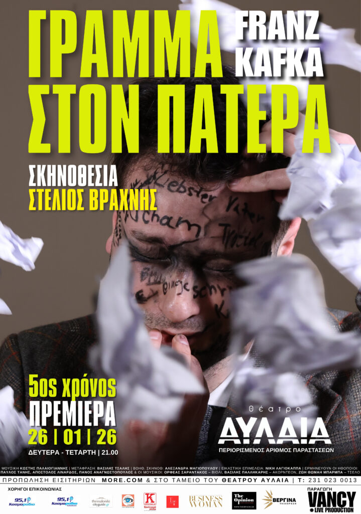 «ΓΡΑΜΜΑ ΣΤΟΝ ΠΑΤΕΡΑ», η συγκλονιστική εξομολόγηση του Φραντς Κάφκα | Μετάφραση: Βασίλης Τσαλής | Σκηνοθεσία, Σύνθεση κειμένων & Δραματουργία: Στέλιος Βραχνής | Πρωτότυπη μουσική: Κωστής Παλαιογιάννης | 9 έως 11 Φεβρουαρίου