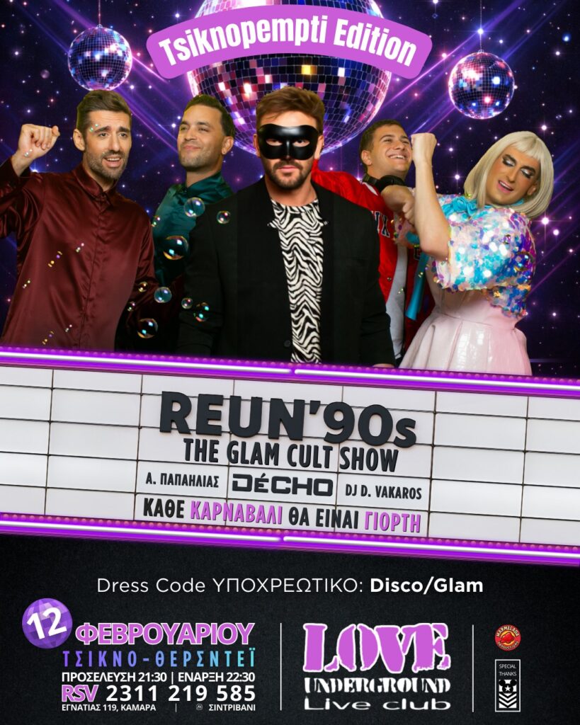 DECHO – ΑΝΤΩΝΗΣ ΠΑΠΑΗΛΙΑΣ – DJ VAKAROS: REUN’90s – ΤΣΙΚΝΟΠΕΜΠΤΗ DISCO/GLAM EDITION | 12 Φεβρουαρίου