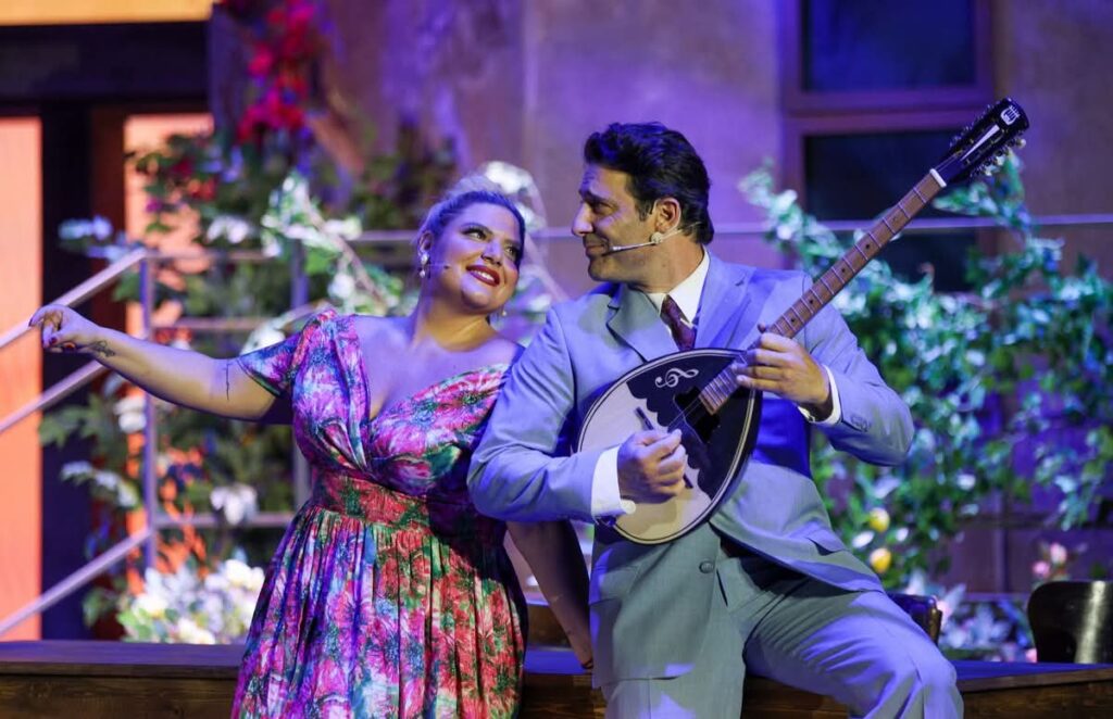 Επί σκηνής, η αέρινη Μιρέλα Πάχου τραγουδά, παίζει ακορντεόν και όχι μόνο. Στο βιολί, ο Αλέξανδρος Ιακώβου.