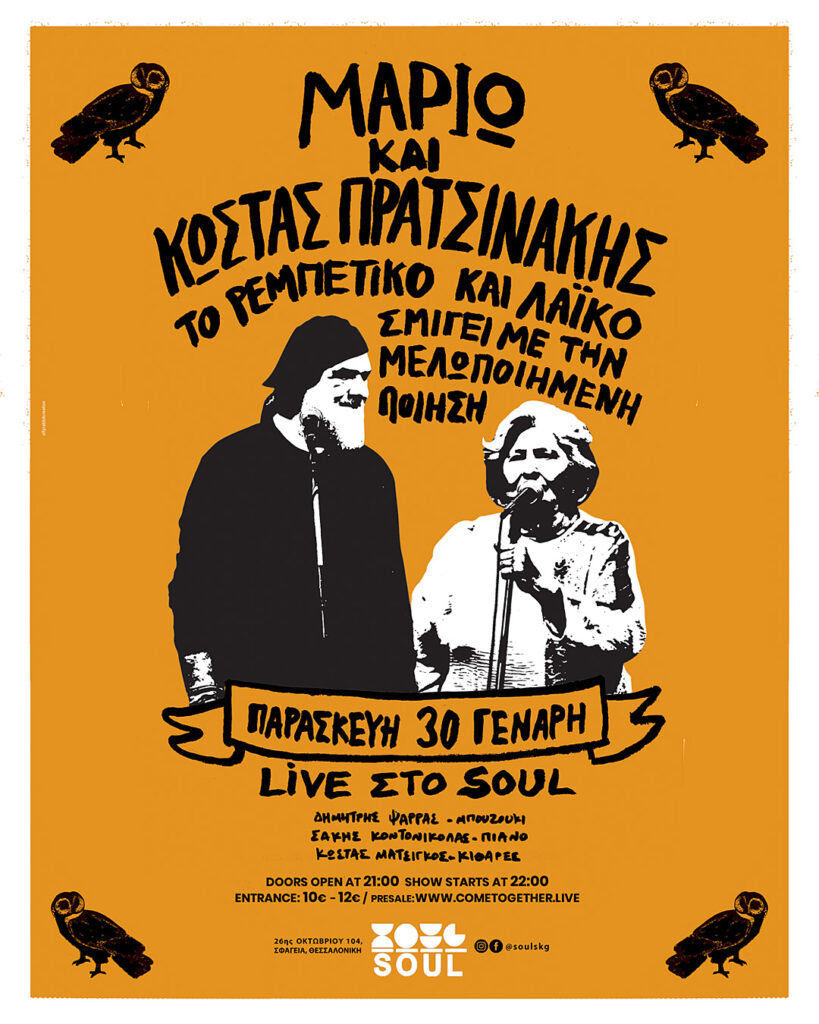 ΜΑΡΙΩ & ΚΩΣΤΑΣ ΠΡΑΤΣΙΝΑΚΗΣ: «Το ρεμπέτικο και το λαϊκό σμίγει με τη μελοποιημένη ποίηση» | 30 Ιανουαρίου