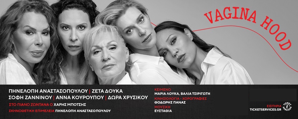 «VAGINAHOOD», βασισμένο σε μια ιδέα της Ζέτας Δούκα και της Δώρας Χρυσικού | Κείμενο: Βάλια Τσιριγώτη & Μαρία Λούκα | Δραματουργική επεξεργασία: Βάλια Τσιριγώτη | Σκηνοθετική επιμέλεια: Πηvελόπη Αναστασοπούλου | Μουσική επιμέλεια, Πρωτότυπη σύνθεση: Ευσταθία | 6 έως 8 Φεβρουαρίου