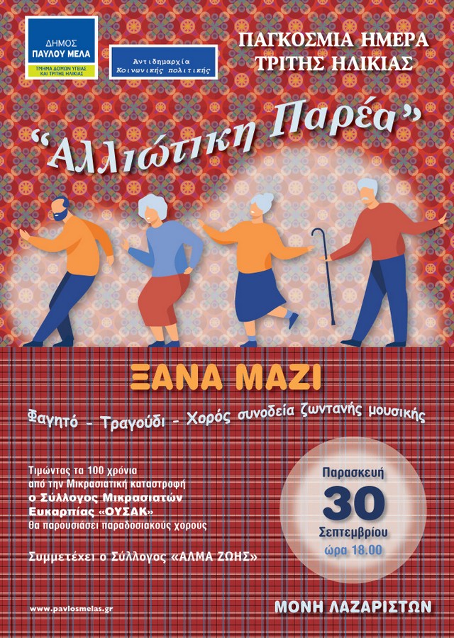 Τα ΚΑΠΗ του Δήμου Παύλου Μελά στο πλαίσιο της Παγκόσμιας Ημέρας Τρίτης Ηλικίας διοργανώνουν μια μοναδική εκδήλωση για όλους.