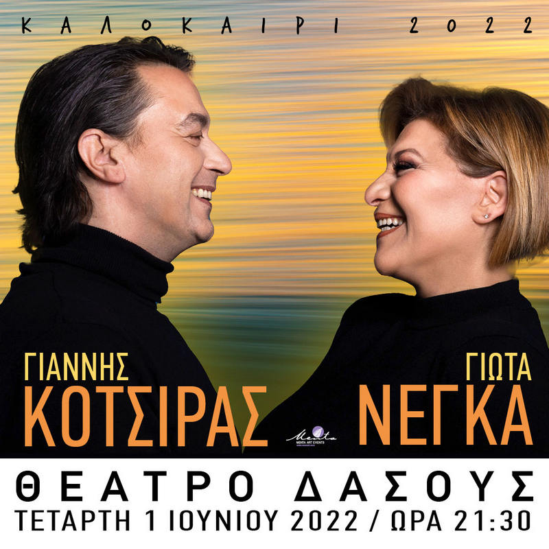 Ο Γιάννης Κότσιρας και η Γιώτα Νέγκα μετά τις επιτυχημένες τους εμφανίσεις στην Αθήνα συμπράττουν επί σκηνής και το καλοκαίρι ενώνοντας τις φωνές τους και μας μεταφέρουν μέσα από ένα μουσικό ταξίδι στο καλό Ελληνικό τραγούδι. Γιάννης Κότσιρας και Γιώτα Νέγκα ερμηνεύουν διαχρονικές επιτυχίες που έχουν ξεχωριστή θέση στην καρδιά μας, σε μία βραδιά γεμάτη συγκίνηση και χαρά.