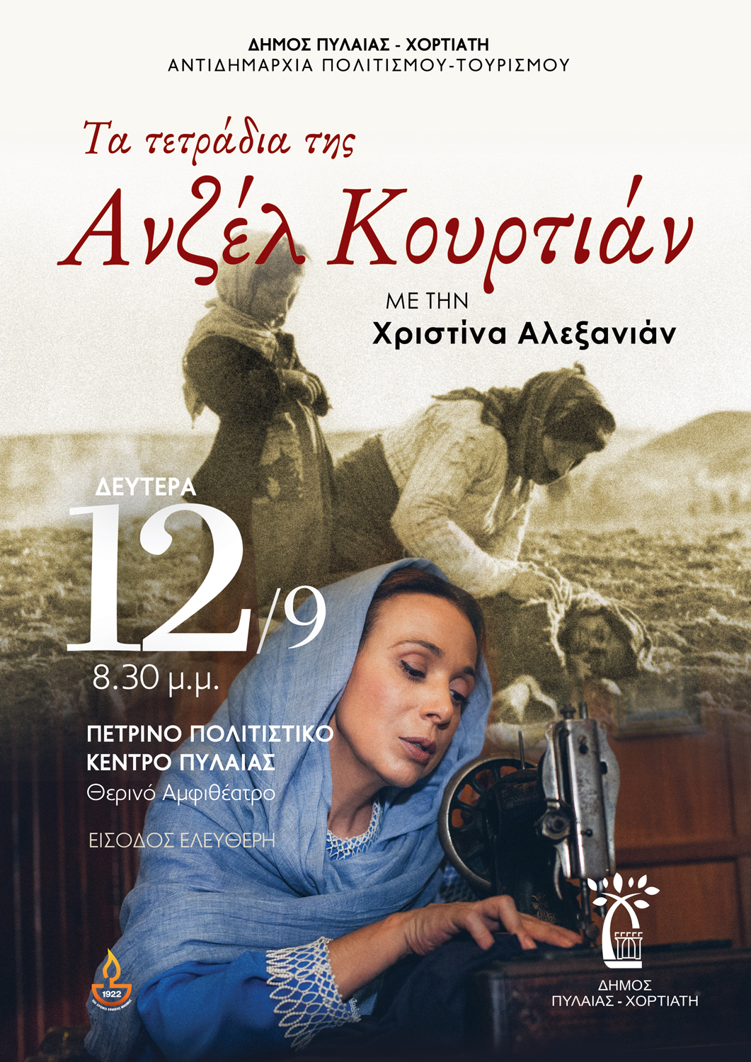 Η θεατρική παράσταση «Τα τετράδια της Ανζέλ Κουρτιάν» θα παρουσιαστεί στο Πέτρινο της Πυλαίας, τη Δευτέρα 12 Σεπτεμβρίου.