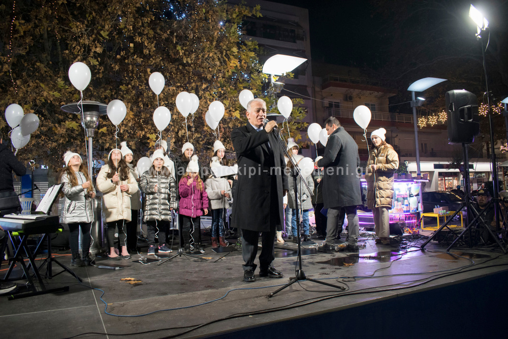 Στη συνέχεια η παιδική χορωδία Μενεμένης έψαλε όμορφα κάλαντα και χριστουγεννιάτικα τραγούδια, ενώ ακολούθησε το άναμμα του Χριστουγεννιάτικου Δέντρου από το Δήμαρχο Λάζαρο Κυρίζογλου.