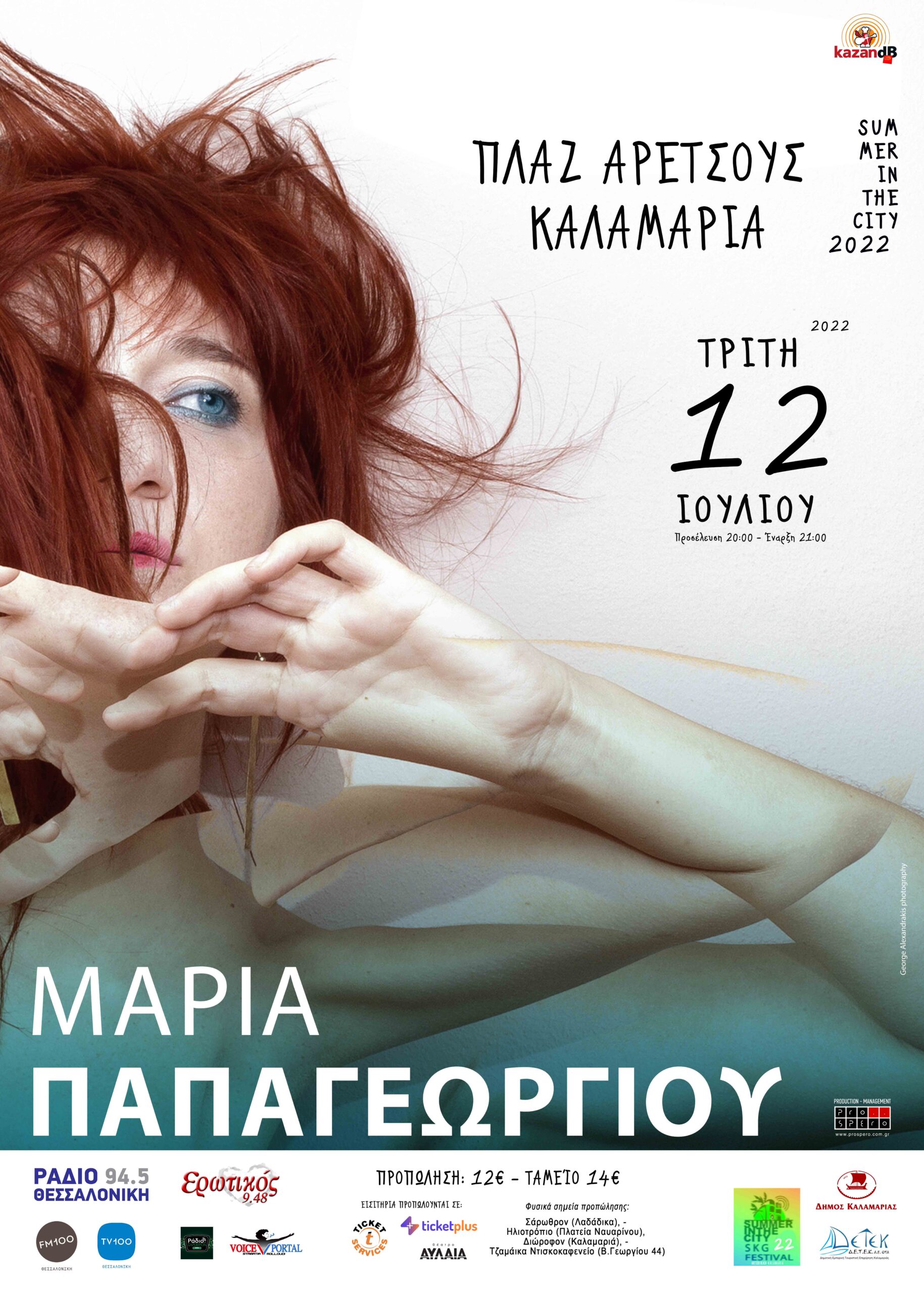 Την Τρίτη 12 Ιουλίου, εμφανίζεται στην Πλαζ Αρετσούς στην Καλαμαριά στο πλαίσιο του Summer in the City – SKG Music Festival.