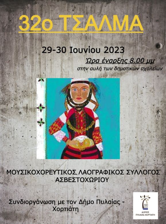 Χοροί, δρώμενα αλλά και παραδοσιακό γλέντι περιλαμβάνει η γιορτή «Τσάλμα» που διοργανώνει στις 29-30/06 ο Μουσικοχορευτικός Λαογραφικός Σύλλογος Ασβεστοχωρίου, σε συνεργασία με την Αντιδημαρχία Πολιτισμού και Τουρισμού του δήμου Πυλαίας-Χορτιάτη.