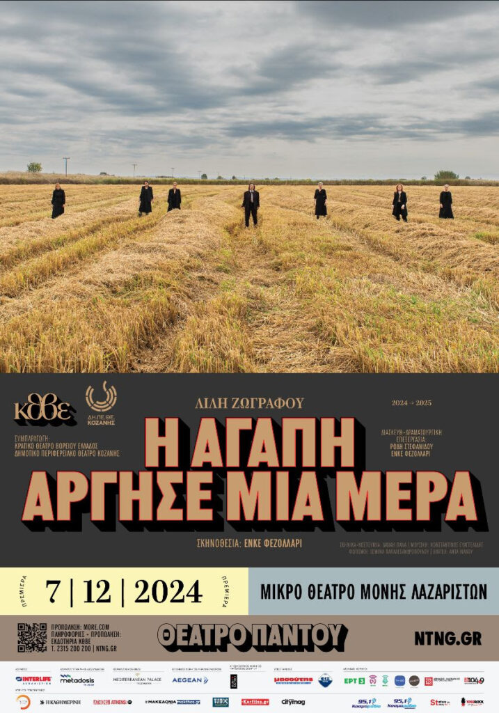 Μετά τη μεγάλη επιτυχία, στην Κοζάνη αλλά και σε άλλες περιοχές της Βόρειας Ελλάδας, η παράσταση «Η αγάπη άργησε μια μέρα», που αποτελεί μια συμπαραγωγή του Κρατικού Θεάτρου Βορείου Ελλάδος και του Δημοτικού Περιφερειακού Θεάτρου Κοζάνης, έρχεται από το Σάββατο 7 Δεκεμβρίου στο Μικρό Θέατρο της Μονής Λαζαριστών.