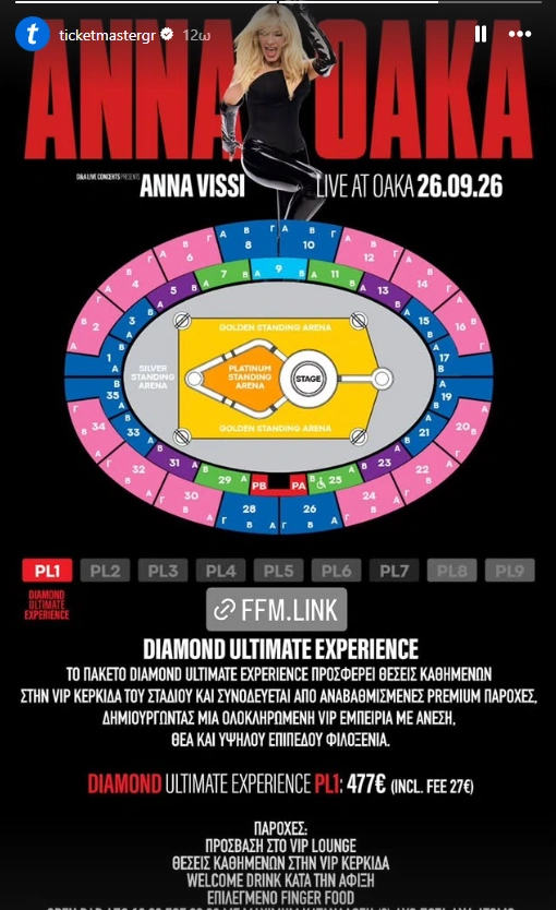 Πόσο κοστίζει το πιο ακριβό εισιτήριο για την συναυλία της Άννας Βίσση στο ΟΑΚΑ