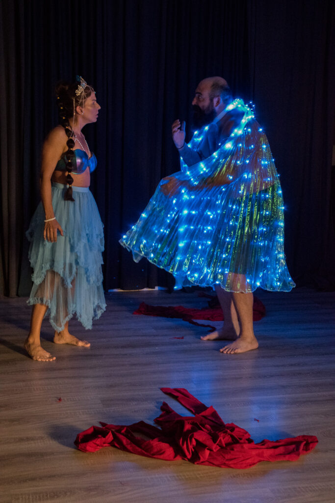 Οι ηθοποιοί που ενσαρκώνουν αυτούς τους χαρακτήρες -η Χριστίνα Δινάκη, ο Ραφαήλ – Φίλιππος Σαρχοσίδης, ο Γιώργος Νέστορας και η Ευαγγελία Χατζηγιάννη- είναι τέσσερα ταλαντούχα πλάσματα, τα οποία έχουν «δώσει την ψυχούλα» τους για να καταφέρει να γίνει ο μύθος, πραγματικότητα. Μαζί τους η Όλγα Αλεξίου, μία εξαιρετική μουσικός, δίνει ρυθμό με κρουστά καθ’ όλη τη διάρκεια της performance και μας μεταφέρει συνεχώς στο κατάλληλο κλίμα.