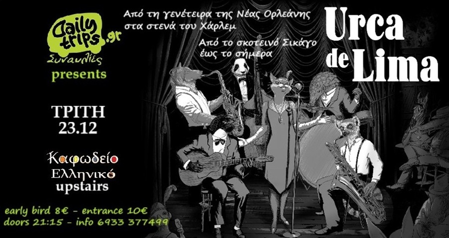 Μουσική αφήγηση για πάνω από δύο ώρες, οι Urca de Lima βουτάνε σε ασπρόμαυρo φίλμ και ταξιδεύουν στις jazz παραδόσεις της Βόρειας Αμερικής του Νέου Κόσμου. Νέα Ορλεάνη με άλικο μπλουζ, Χάρλεμ με νέον που τρεμοπαίζει, Σικάγο με καπνό και υγρασία, Ντιτρόιτ με σφυγμό από ατσάλι. Το swing στήνει τη σκηνή, το bebop μιλάει γρήγορα στις γωνίες, το hard bop περπατάει κόντρα στον άνεμο. Τέσσερα πνευστά, φωνή, μπάσο, πιάνο, ντραμς. Η jazz γραφή δένει με την ορχηστρική δύναμη και γεννά καρέ από φιλμ νουάρ: σιωπή, ένας αναπτήρας, και μετά ένα σόλο που σκίζει τη νύχτα. Δεν είναι νοσταλγία. Είναι ανάκριση μνήμης, με αποδείξεις γραμμένες σε πεντάγραμμα. Δισκογραφία EP: Azule Tapes (2022) Album: Steam City (Δεκέμβριος 2024) με 15 κομμάτια που κινούνται ανάμεσα σε Jazz, Latin και Fusion/Ambient
