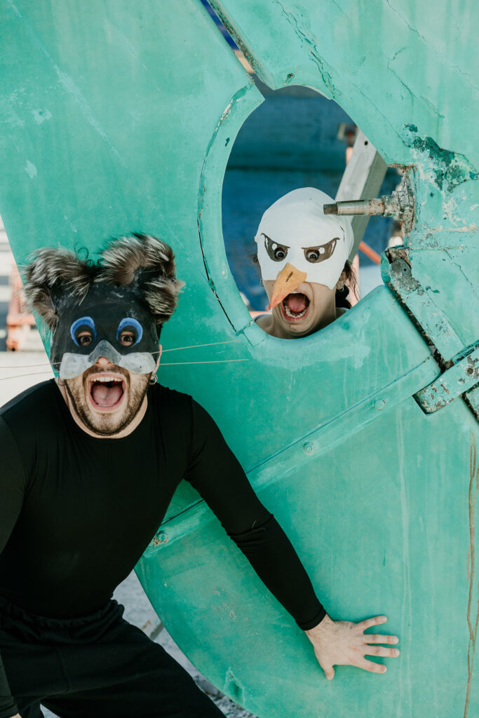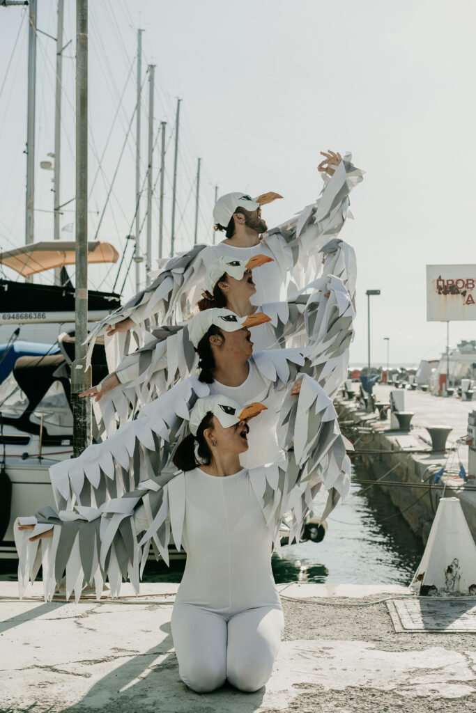 Τέσσερις εξαιρετικοί ηθοποιοί φορούν τις μάσκες τους, και μεταμορφώνονται σε γλάρους και γάτους του λιμανιού. Τραγουδούν ζωντανά, χορεύουν και μιλούν για την διαφορετικότητα, την αγάπη και τον σεβασμό για κάθε τι που φαντάζει ξένο, μακρινό, αλλιώτικο.