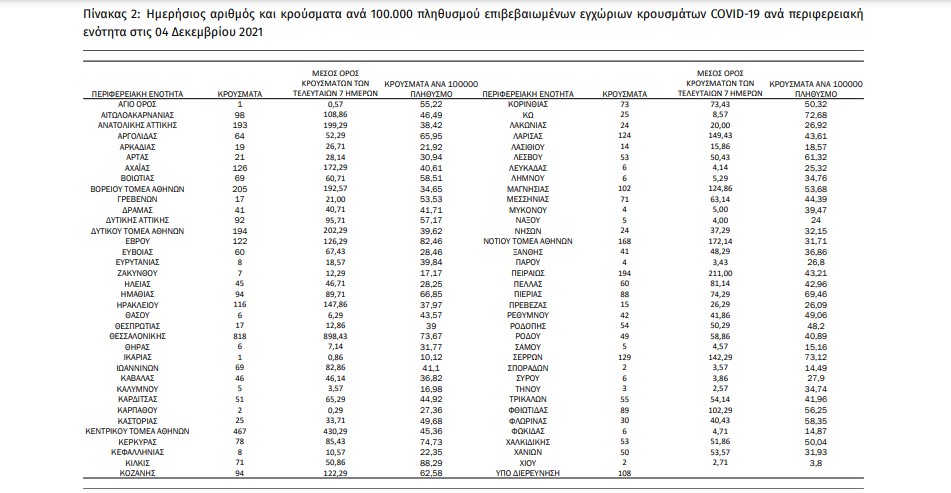 Η κατανομή των 5.140 νέων εγχώριων κρουσμάτων ανά Περιφερειακή Ενότητα παρουσιάζεται στον κατωτέρω πίνακα: