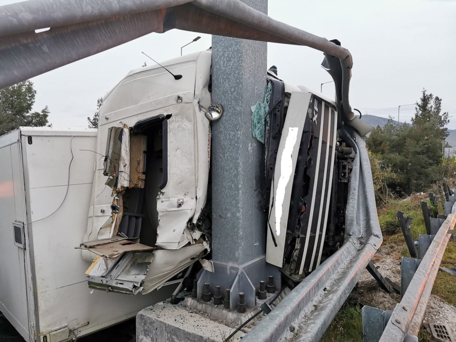 Όλα έγιναν όταν νταλίκα που κινούνταν στο ρεύμα προς Αθήνα – στο ύψος του κόμβου Γυρτώνης – υπό άγνωστες συνθήκες βγήκε εκτός πορείας με αποτέλεσμα να προσκρούσει σε μια κολόνα.