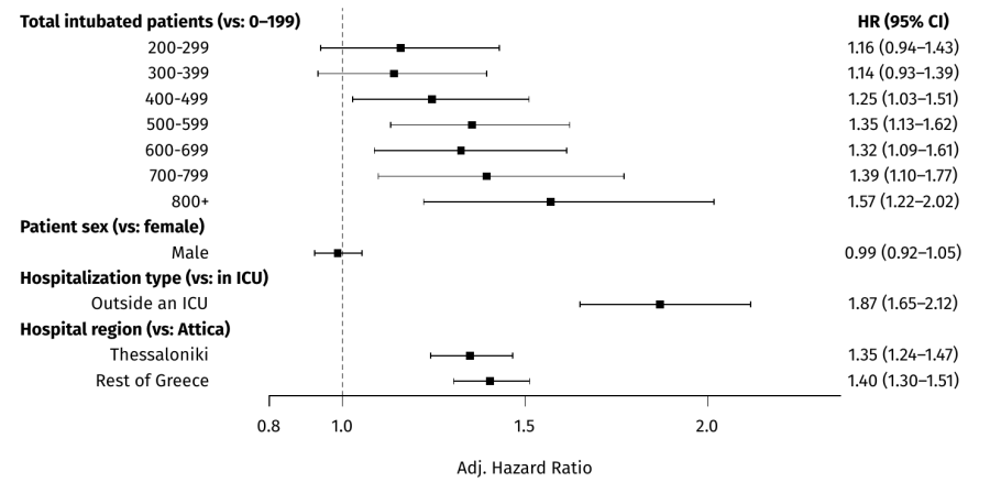 Σύμφωνα με τον καθηγητή λοιμωξιολογίας, η νοσηλεία εκτός ΜΕΘ σχετίζεται με 87% αυξημένη θνητότητα, με την μελέτη να δείχνει πως το ΕΣΥ αδυνατεί να ανταποκριθεί στον φόρτο όταν υπάρχουν πάνω από 400 διασωληνωμένοι, με αποτέλεσμα να πεθαίνουν ασθενείς που θα ζούσαν αν νοσηλεύονταν υπό άλλες συνθήκες.