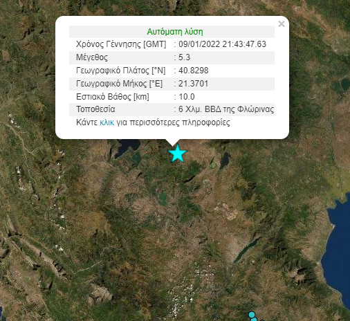 Ισχυρός σεισμός 5,3 Ρίχτερ σημειώθηκε λίγο πριν τα μεσάνυχτα της Κυριακής έξι χιλιόμετρα βορειοδυτικά της Φλώρινας.