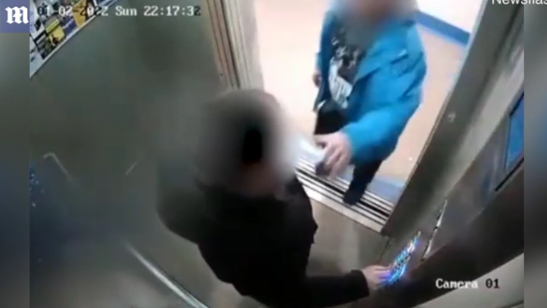 Η κάμερα ασφαλείας του ασανσέρ καταγράφει το περιστατικό και το άγριο γρονθοκόπημα που υφίσταται ο δράστης από τον πατέρα.
