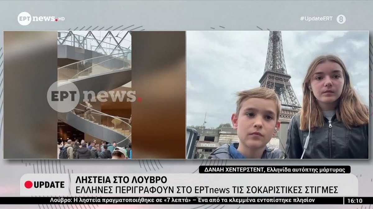 Αυτόπτες μάρτυρες της κινηματογραφικής ληστείας στο Μουσείο του Λούβρου στο Παρίσι, έγιναν ο Λουκάς και η Δανάη Χέντερστεντ, δύο ελληνόπουλα που με χαρακτηριστική ψυχραιμία περιέγραψαν στο EΡΤnews και στην εκπομπή «Newsroom» τα όσα βίωσαν.