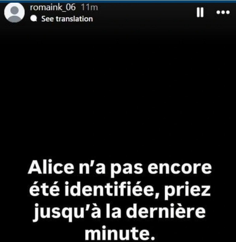 «Η Αλίκη δεν έχει ακόμη ταυτοποιηθεί, προσευχηθείτε μέχρι το τελευταίο λεπτό» έγραψε με story στο Instagram.