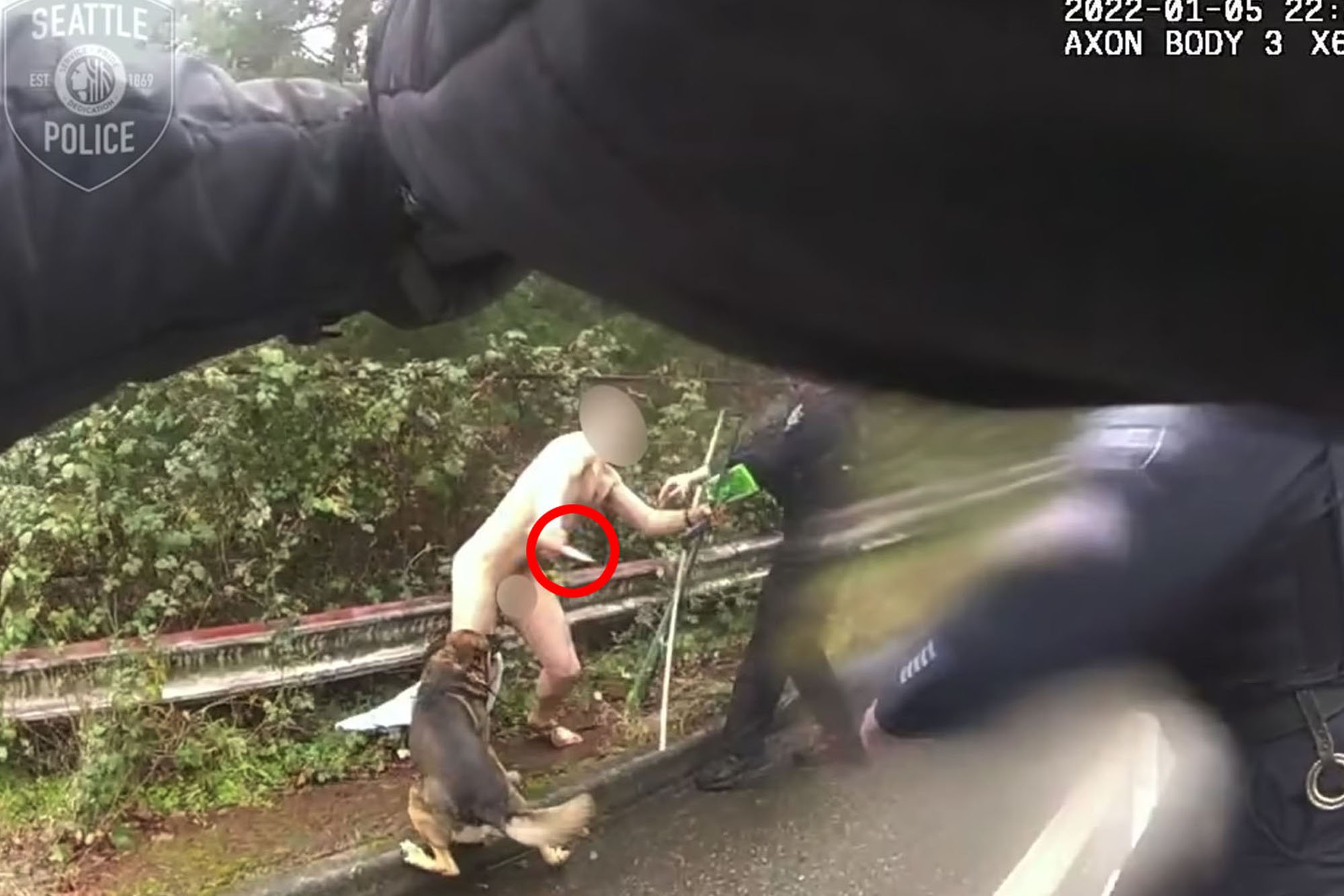 Ύποπτος διάρρηξης μαχαίρωσε θανάσιμα αστυνομικό σκύλο, ενώ τραυμάτισε αξιωματικό στο πρόσωπο με τη ματσέτα του, όπως καταγράφεται στο ανατριχιαστικό βίντεο που έδωσε στη δημοσιότητα η αστυνομία του Σιάτλ.