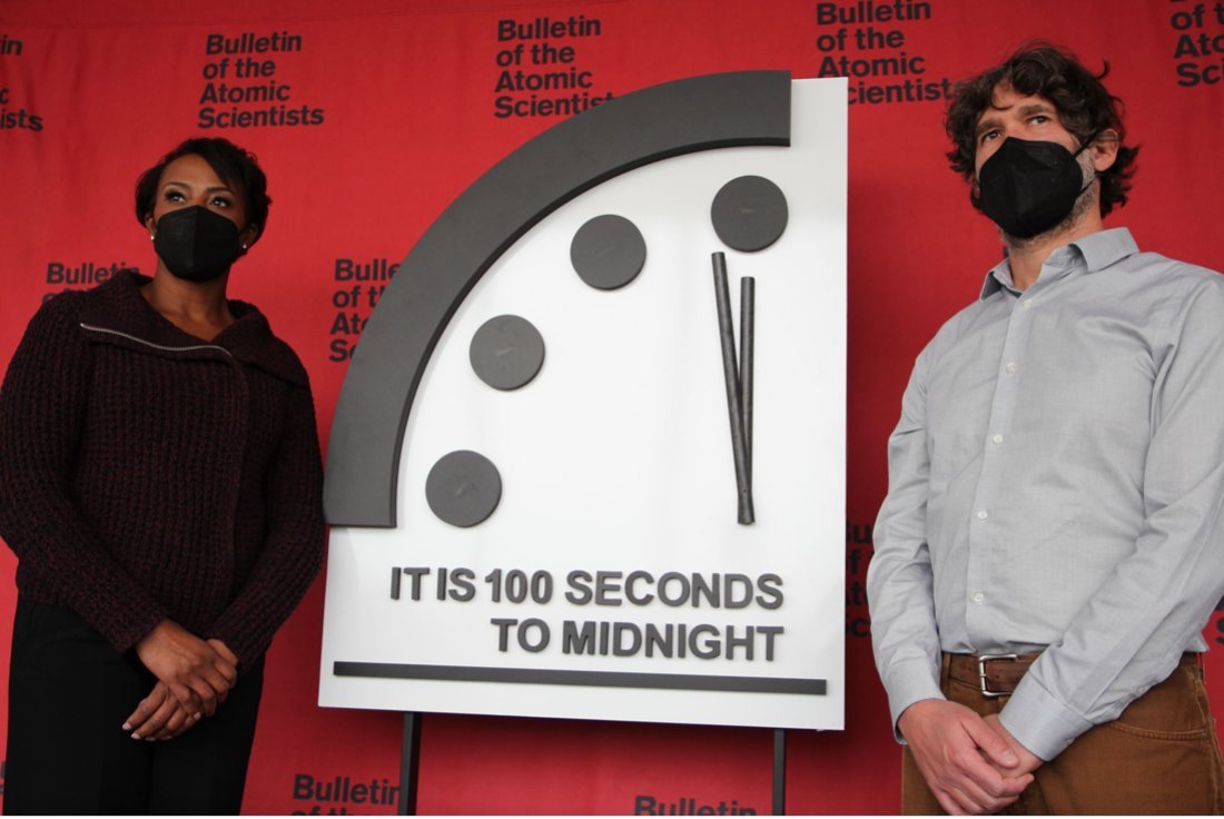 Οι δείκτες του ρολογιού της Αποκάλυψης, που από το 1947 συμβολίζει ένα επικείμενο γεγονός κατακλυσμιαίας σημασίας για τον πλανήτη, διατηρήθηκαν στα 100 δευτερόλεπτα από τα μεσάνυχτα, από το μοιραίο για τον κόσμο χτύπημα, καθώς δεν παρατηρήθηκε καμία βελτίωση στην παγκόσμια κατάσταση από το 2020 μέχρι σήμερα.