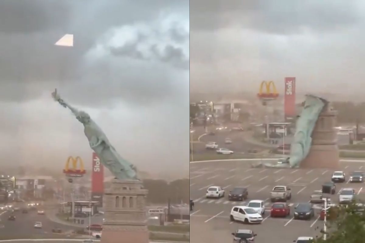 WATCH: Replica of the Statue of Liberty topples due to strong winds in Guaíba, Brazil pic.twitter.com/pMxN7KLu5y