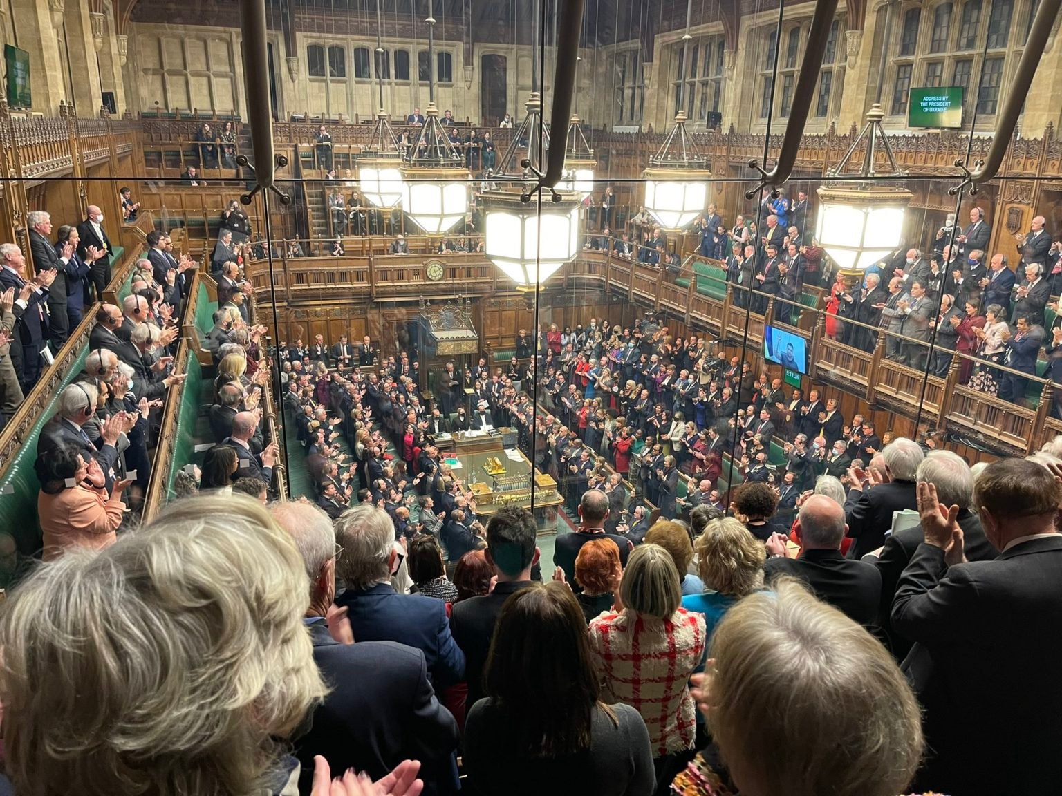 Στο βρετανικό Κοινοβούλιο μίλησε μέσω βιντεοκλήσης ο πρόεδρος της Ουκρανίας Βολοντίμιρ Ζελένσκι όπου καταχειροκροτήθηκε. «Δεν θέλουμε να χάσουμε τη χώρα μας. Θα πολεμήσουμε μέχρι το τέλος για την πατρίδα μας, σε γη, αέρα και θάλασσα, με οποιοδήποτε κόστος» τόνισε ο Ζελένσκι που ακολούθως μίλησε για τη γενναιότητα των Ουκρανών που πολεμούν τα ρωσικά στρατεύματα.
