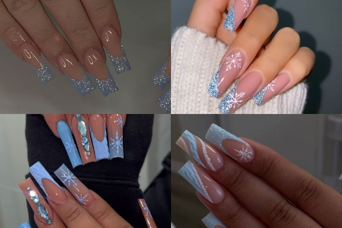 Το ψύχος του χειμώνα μπορεί να αποτυπωθεί και στα νύχια με light blue και χιονονιφάδες ή glitter.