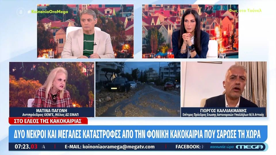 H καταστροφή στην Γλυφάδα και ο θάνατος της 56χρονης έφερε ένταση μεταξύ της Ματίνας Παγώνη και του Γιώργου Καλλιακμάνη στον αέρα της εκπομπής «Κοινωνία ώρα MEGA».